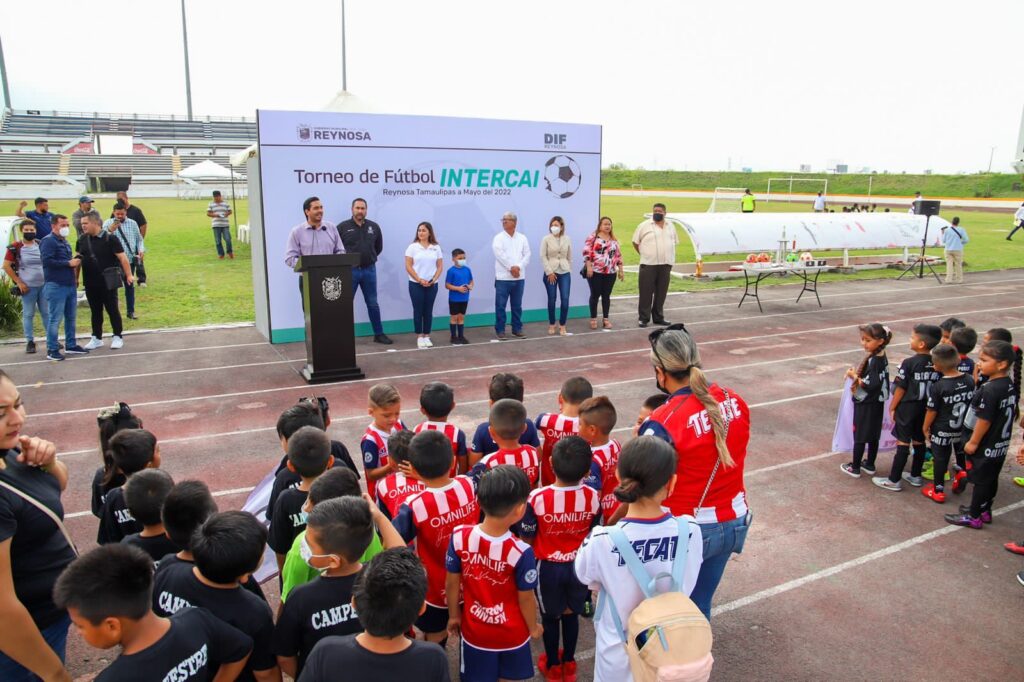 Reynosa, Tamaulipas. — El presidente municipal Carlos Peña Ortiz, inauguró a nombre del Gobierno Municipal de Reynosa el Torneo de Futbol INTERCAI, como impulso al deporte por una vida saludable, que involucra a niños, jóvenes y padres de familia en esta ciudad.