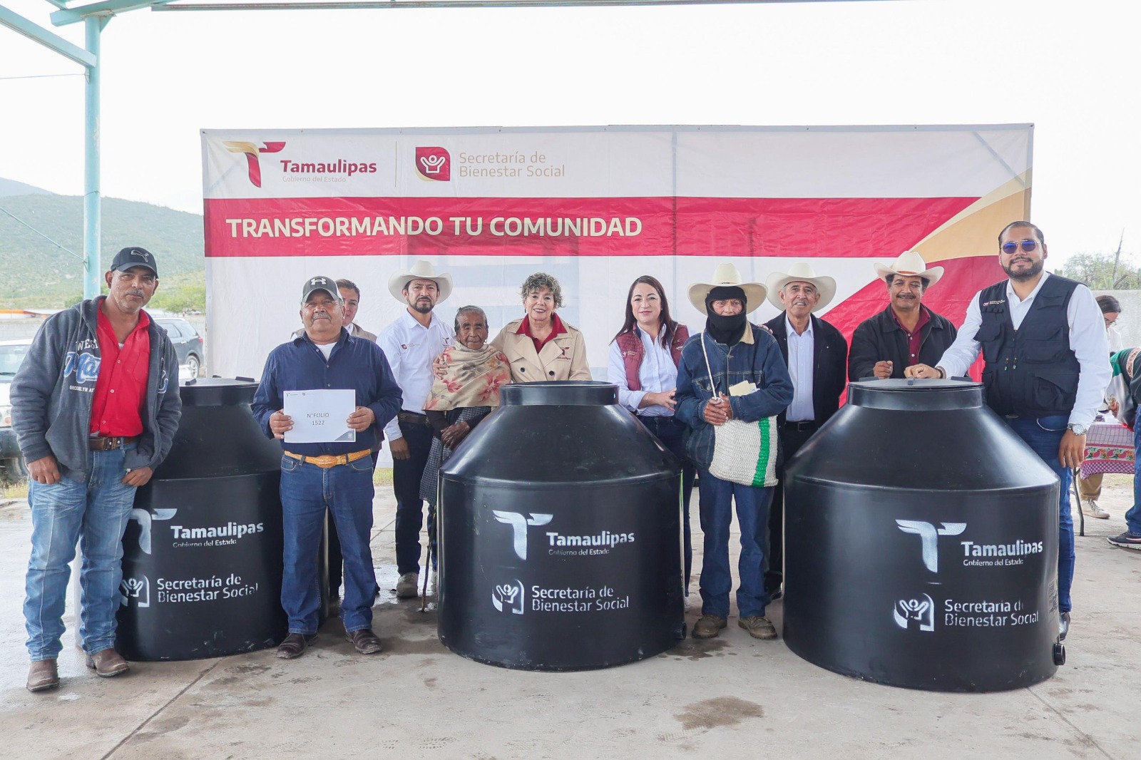 La escuela primaria rural “Lic. Benito Juárez” fue el escenario para que las autoridades y beneficiarios se reunieran y celebraran la llegada de tinacos con capacidad de almacenar hasta 750 litros de agua, que les facilitarán el abasto en esta zona que se caracteriza por escasas precipitaciones de lluvia.