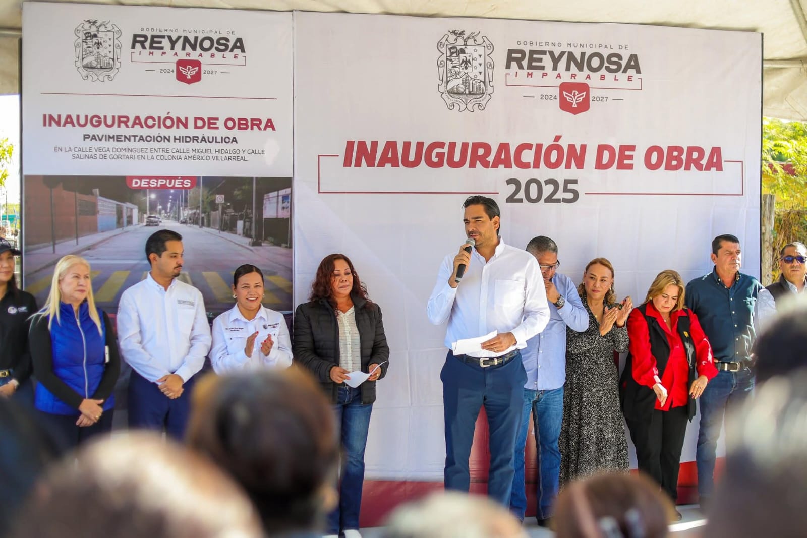 En Reynosa la gente celebra las buenas obras de su Gobierno; con una fiesta gastronómica los colonos de la Américo Villarreal Guerra recibieron a Carlos Peña Ortiz, el delicioso aroma del pollo con mole y arroz, los tamales norteños y veracruzanos evocando la unidad ciudadana fueron la muestra de reconocimiento por la inauguración de la pavimentación hidráulica de la calle Vega Domínguez.